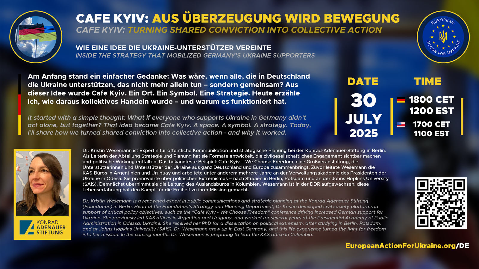 Sie möchten der Ukraine helfen, wissen aber nicht, wo Sie anfangen sollen? Nehmen Sie an den Advocacy-Trainings-Webinaren von European Action for Ukraine (EAU) teil – einer Reihe von motivierenden Webinaren, die Ukraine-Unterstützern Einblicke, Strategien und Werkzeuge vermitteln, um sich bei europäischen Registerungsung effeistützerung der Ukraine einzusetzen. Egal, ob Sie neu im Aktivismus sind oder sich bereits engagieren, diese Kurse helfen Ihnen, eine stärkere Stimme für die Ukraine und die Verteidigung der Demokratie weltweit zu werden.